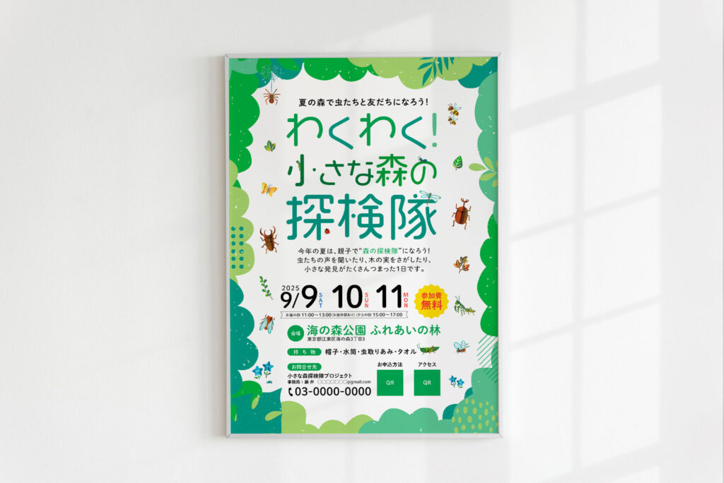 | デザイン | ①森をテーマに、自然の躍動感とワクワクする世界観を表現したデザインに仕上げました ②虫のイラストを使用し、子どもたちが思わずワクワクするようなデザインに仕上げました |