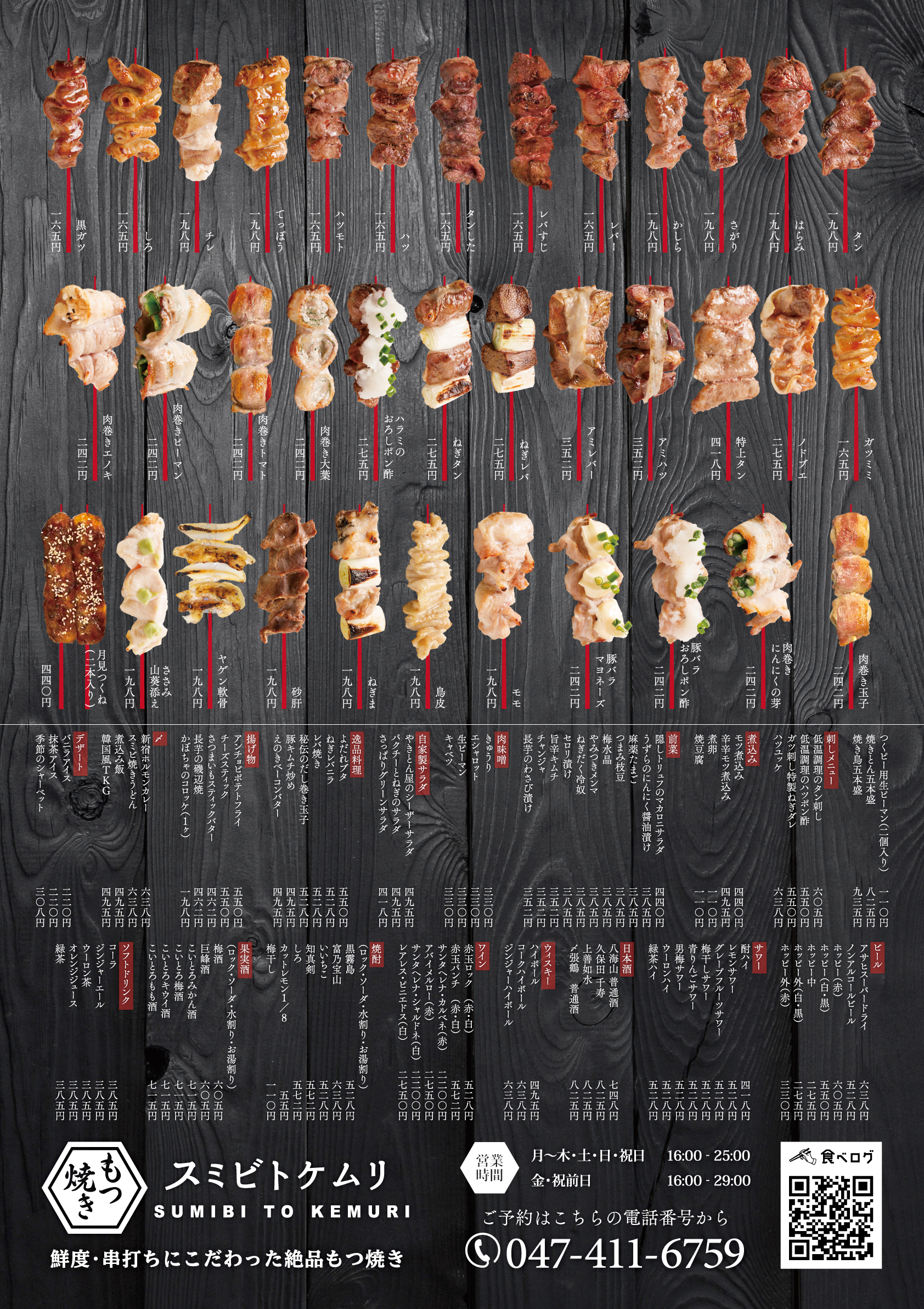| ポイント | 電飾看板用として黒ベースの背景指定があったため、視認性と可読性を考慮し黒木目調で仕上げました。夜間でも問題なく情報が伝わるよう、素材選定と配色に配慮しています。 |